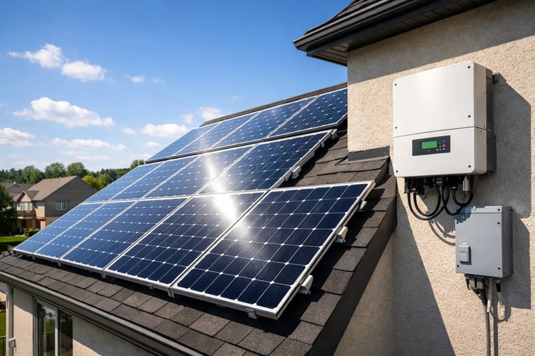 The solar inverter is like a translator between your solar panels and your electrical system. It takes the DC electricity produced by the panels and converts it into AC electricity that can power your lights, computers, refrigerators, and other devices. Modern inverters are highly efficient, converting 95-98% of the DC power into usable AC power. Modern solar systems also include safety disconnects and surge protection to ensure reliable and secure operation.